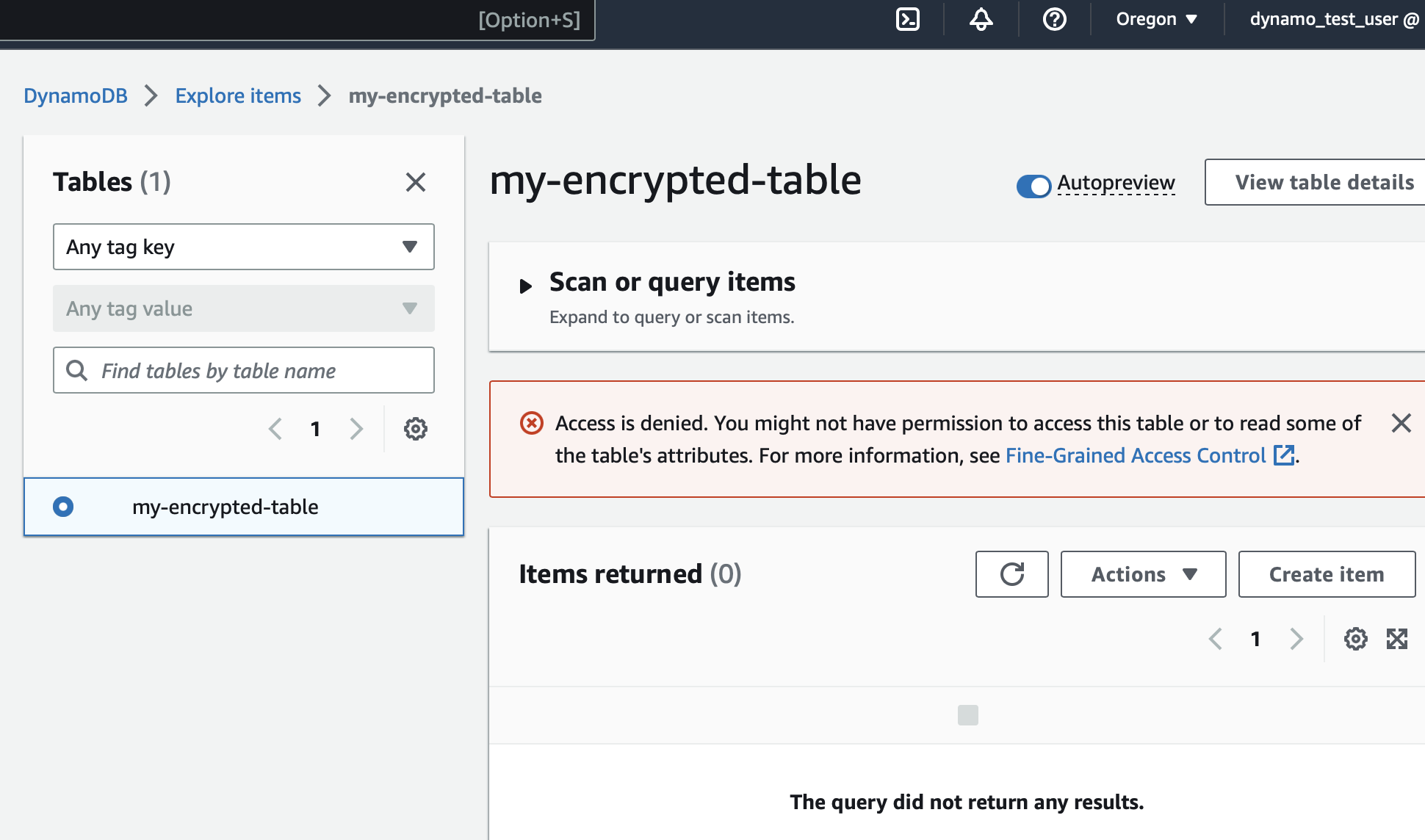 So, this all-powerful user tries to scan our new, encrypted table. What happens?